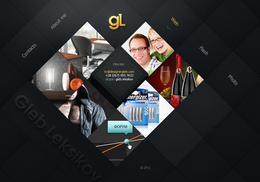 Почти все, на что вы наводите курсор, наполняется энергией и оживает благодаря уникальной анимации. Динамическая навигация прекрасно иллюстрирует его мастерство интерактивного дизайнера в дополнение к фактическим образцам работ, а также прекрасное использование цвета.