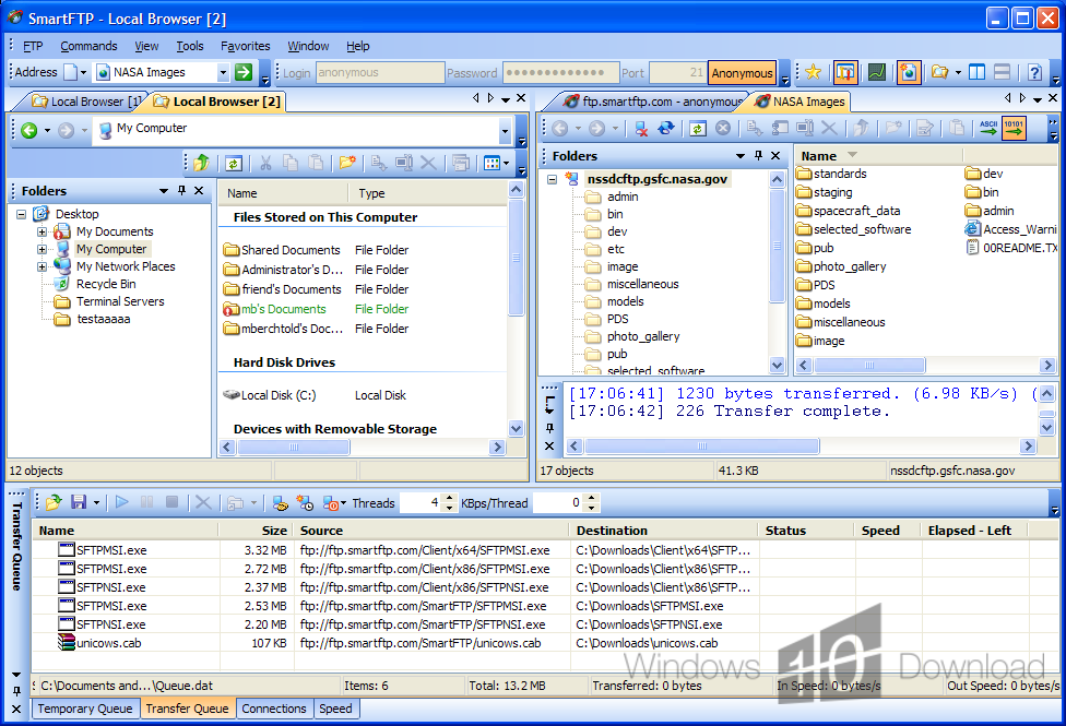 WS_FTP Professional предлагает пользователям безопасный и простой способ загрузки и скачать файлы.