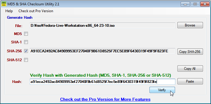 Проверьте целостность контрольной суммы файла, сравнивая файл со строкой хеша MD5.