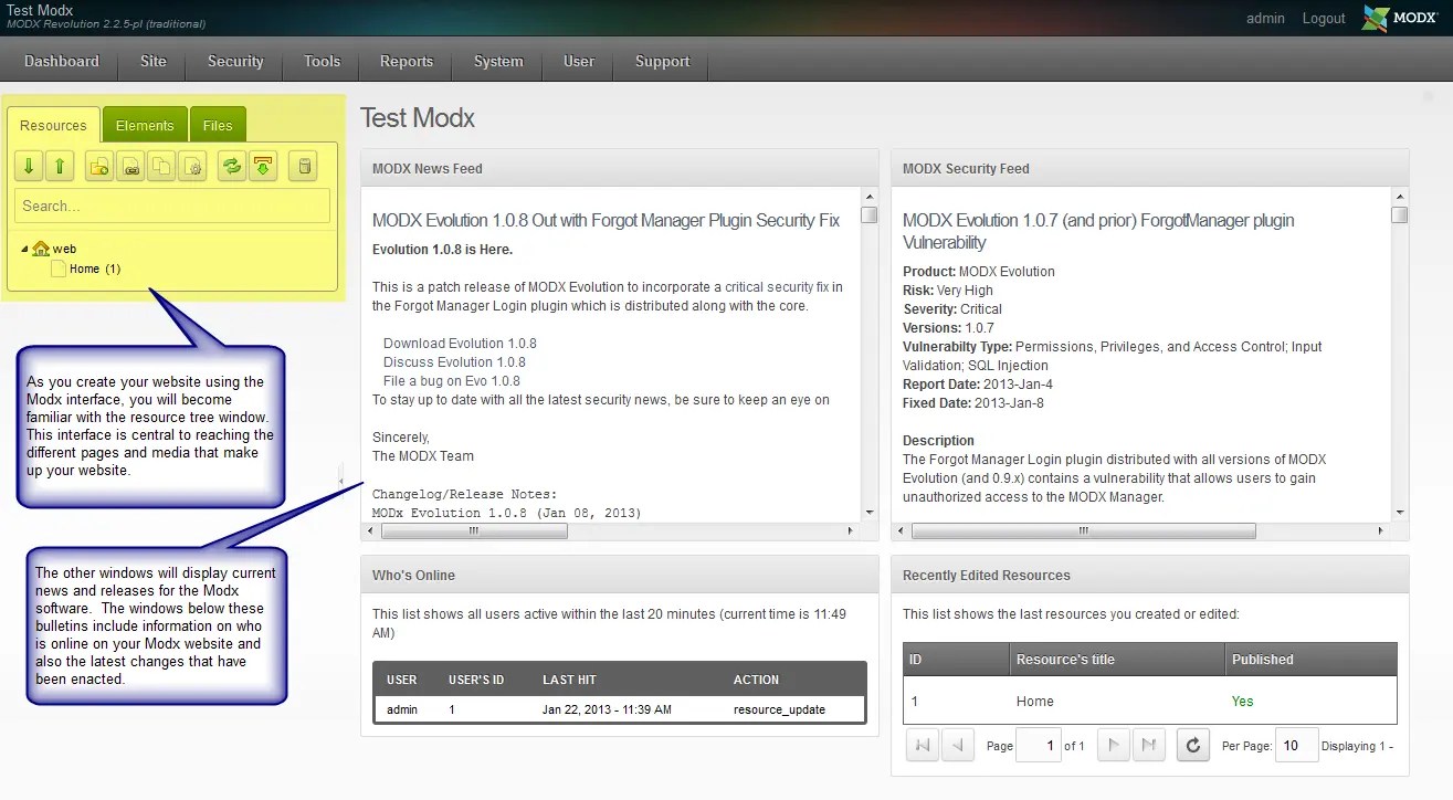 Дерево ресурсов Структура страниц сайта в виде раскрывающегося дерева. Её вы можете увидеть в левой части окна CMS. Она позволяет визуально понять, какие разделы, подразделы и страницы есть на сайте. На скриншоте выше дерево ресурсов находится слева, тёмная область.