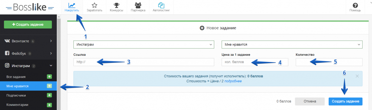 Теперь, когда вы вошли на сайт как зарегистрированный пользователь, вам нужно зарабатывать баллы — внутреннюю валюту сайта. Он нужен для того, чтобы накрутка лайков Вконтакте могла быть оплачена пользователями. Не пугайтесь при слове «валюта» — все по-прежнему бесплатно!