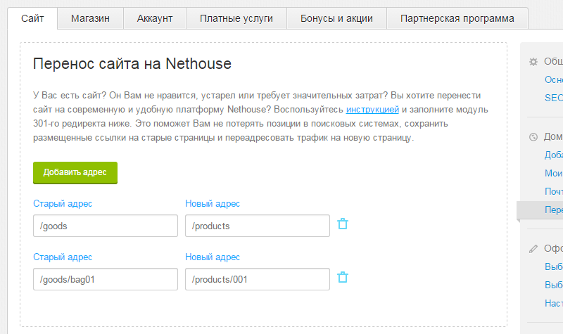 Возможности личного кабинета Nethouse