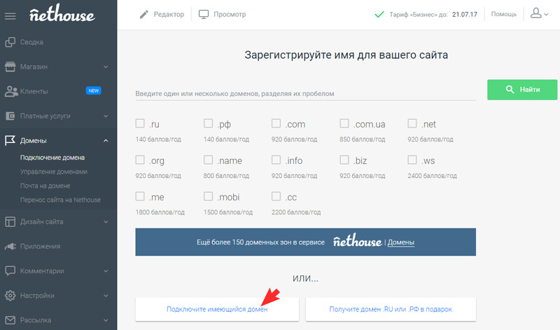 На официальном сайте Нетхаус можно приобрести домен, создать сайт или заказать продвижение. Пользователям требуется зарегистрироваться в системе. Затем выполнить вход в личный кабинет Нетхаус. После авторизации можно воспользоваться всеми опциями и возможностями ЛК. Если пользователь забыл пароль, то его можно восстановить.