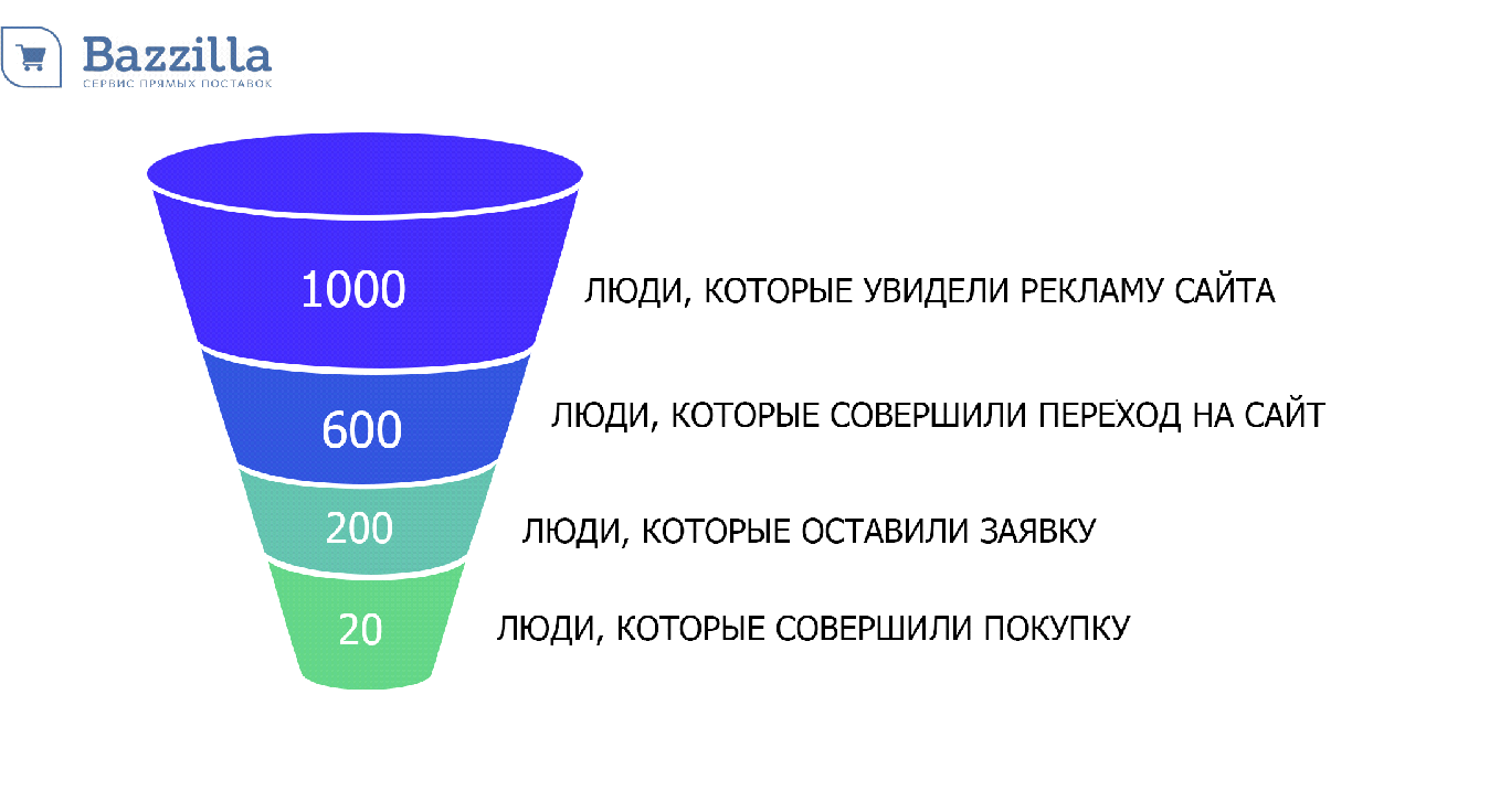 Считайте конверсию на каждом шаге, при этом держите в голове конечную цель: сколько привлеченных с помощью интернет-рекламы пользователей стали клиентами.