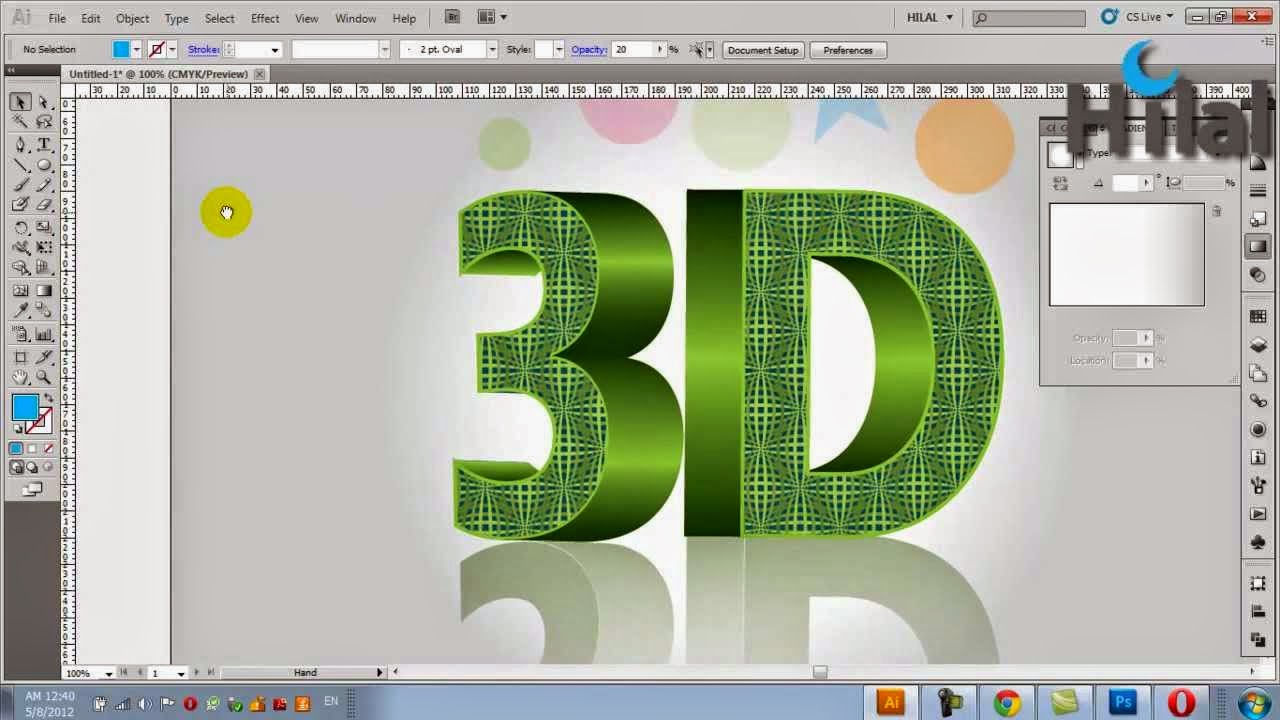 После этого от контурных линий и засечек можно избавиться, а текст будет разбит на буквы и символы. Конструктор волен устанавливать градиенты на своё усмотрение. Чтобы прокрасить грани текстового объекта, которые находятся под световым источником, нужно воспользоваться функцией градиента под названием Status Bar`a, которая располагается обычно внизу с правой стороны на рабочем поле. Также можно воспользоваться правой клавишей мышки и командой Copy Fill Here.