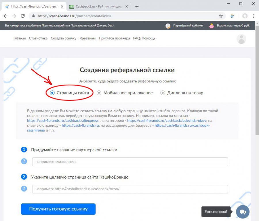 Чтобы сократить партнерский URL, достаточно вставить соответствующий адрес в поле для ссылки. Так выглядел наш партнерский URL до сокращения: