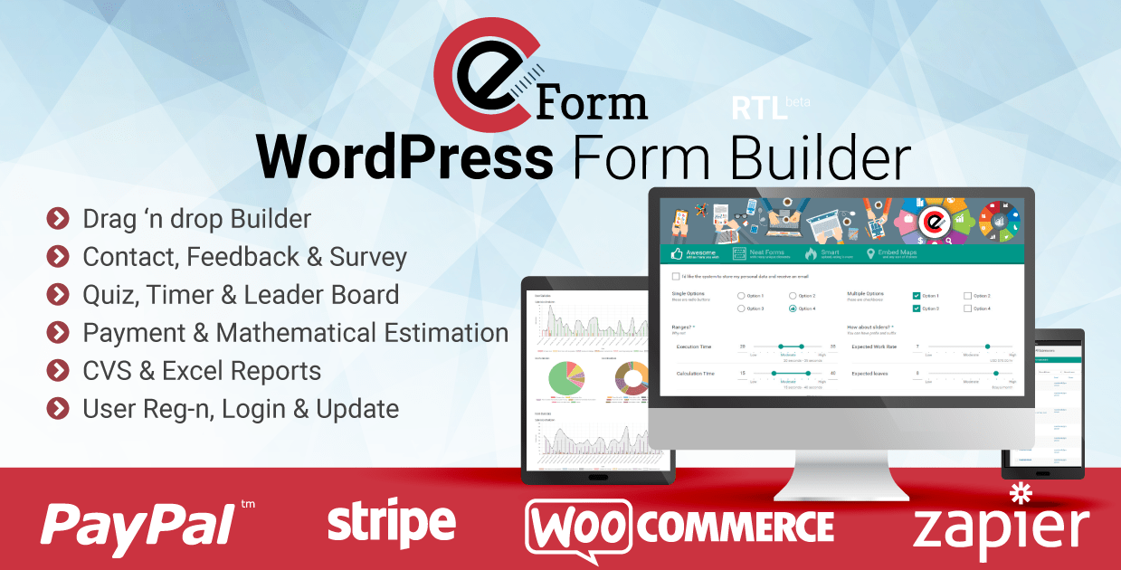 Quform – это плагин для создания форм премиум-класса (29 долларов США), который позволяет создавать простые и сложные формы, используя конструктор одним щелчком мыши и функцию перетаскивания.