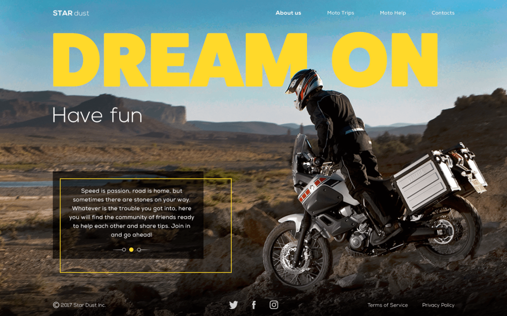Компания выбрала монотонные оттенки в палитре и улучшили визуальную привлекательность благодаря использованию градиента на главной странице. Крупная типографика выглядит контрастно на таком фоне.