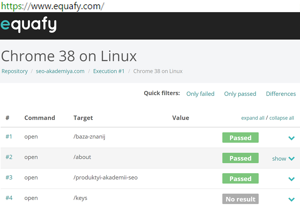 Тестирование нельзя провести автоматически, поэтому оно проходит довольно долго. Небольшой минус — отсутствие возможности тестирования мобильными браузерами. Платная версия значительно расширяет возможности.