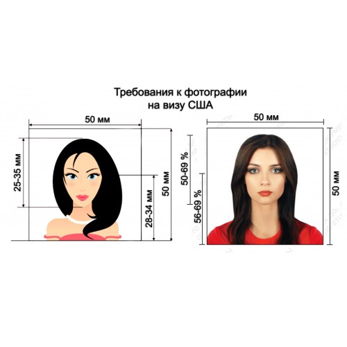 - Размер и положение головы: Расстояние от подбородка до лба должно быть от 32 до 36 мм. По центру и смотрит прямо в камеру.