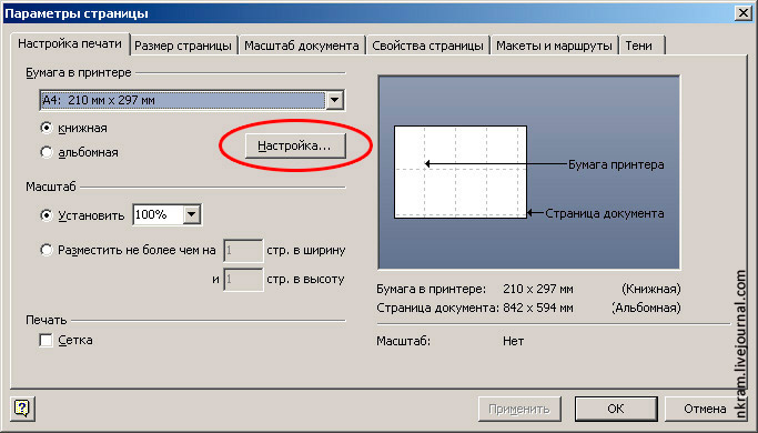 Подтверждение размера печати, указанного в разделе «Размер документа».