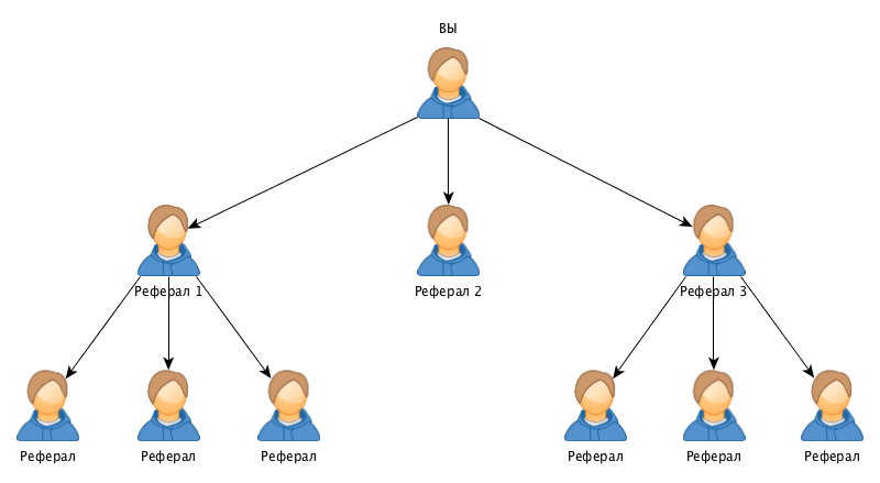 Реферальные программы бывают одноуровневыми и многоуровневыми. Там, где есть только один уровень, аффилиат получает вознаграждение с покупки товара (регистрации), совершенной привлеченными тобой рефералами/покупателями В многоуровневых ты можешь получать вознаграждение не только с покупки твоего реферала, но и с покупок, которые делают люди, которые используют реферальную ссылку твоего реферала.