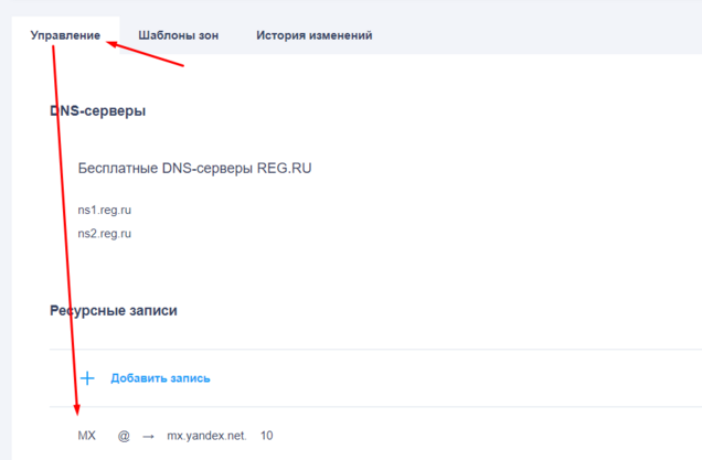 - Если вы используете DNS-серверы ns1.hosting.reg.ru и ns2.hosting.reg.ru, ресурсные записи, которые нужны для работы почты, будут созданы автоматически. Переходите к шагу 2.