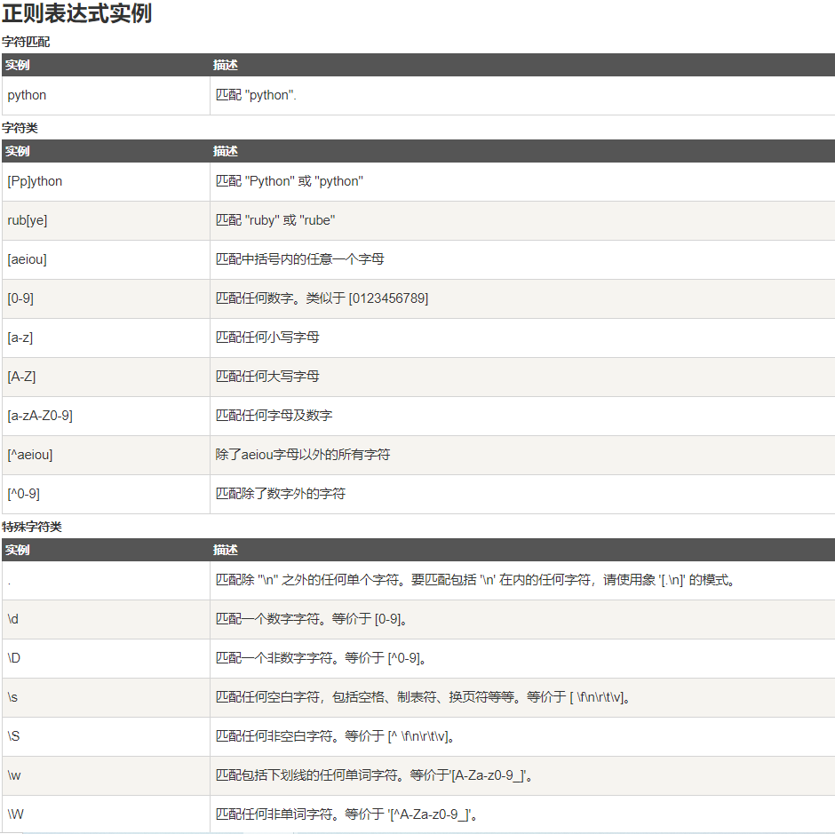 (...) (abc) будет соответствовать подстроке 'abc' Специальные последовательности регулярных выражений (также известные как классы символов)