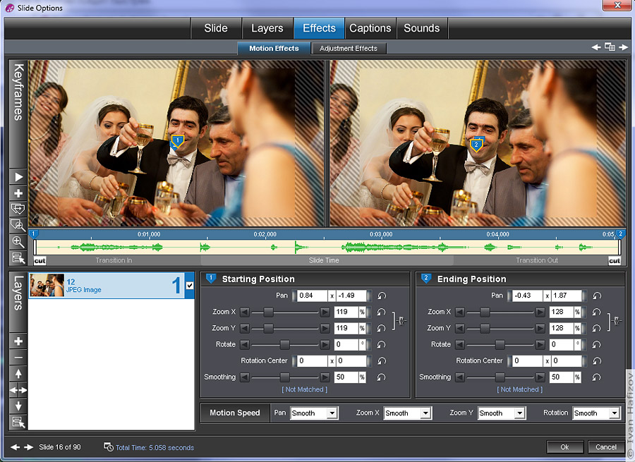 4. Когда добавите анимацию, нажимайте «Применить», отрегулируйте скорость движения.
