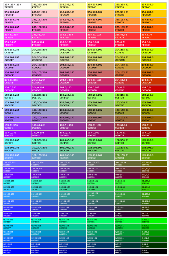 Возможны 16,7 миллиона цветовых комбинаций, хотя на вашей веб-странице следует использовать только несколько одновременно.