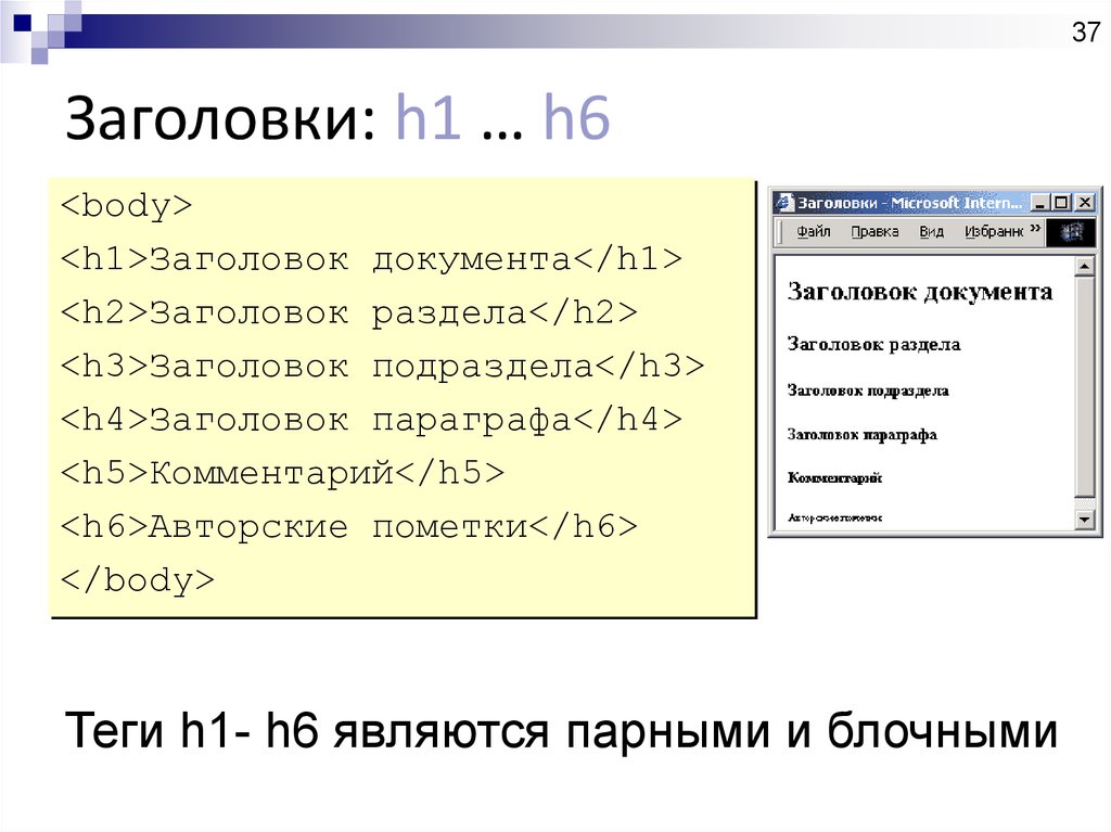 Уровни тегов заголовков