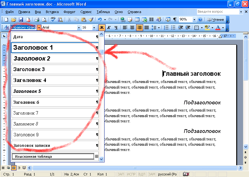 Или откройте раскрывающееся меню и выберите нужный заголовок: