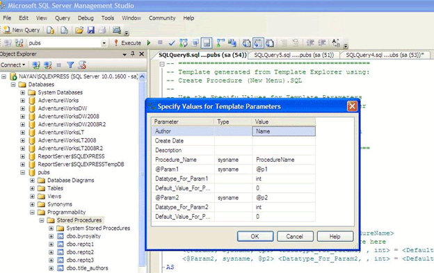 В описанной выше процедуре были изменены некоторые условия.Первое изменение — это параметры. Устанавливая значение в этом разделе кода процедуры, вы присваиваете параметру или переменной значение по умолчанию. В этом коде значение по умолчанию — NULL.