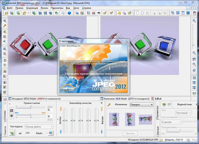 3. Результат компрессии с одинаковыми параметрами в разных программах будет одинаков.