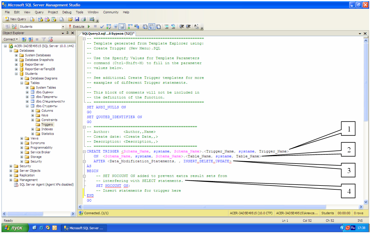 удовлетворять требованиям, предъявляемым к идентификаторам. Имя триггера не