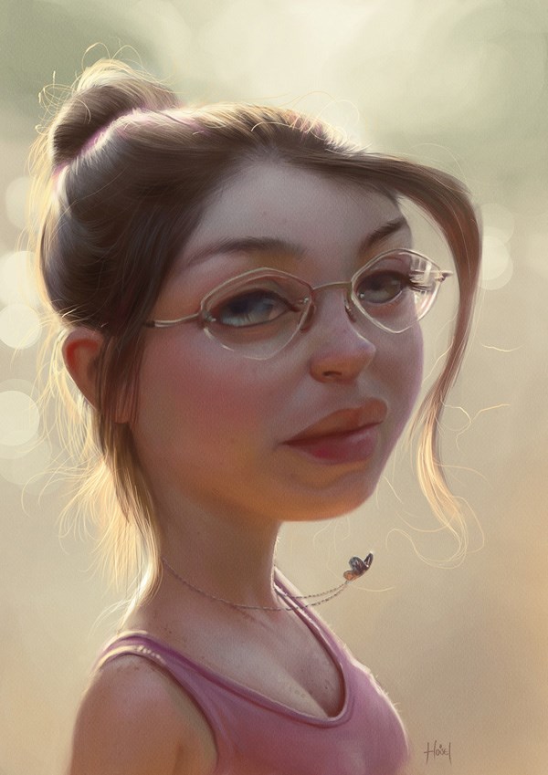 В этот момент Лоис много работает кистью, чтобы проработать детали. Вместо того, чтобы использовать тени и блики, ей нравится использовать разные цвета, чтобы придать объем волосам, коже и глазам.