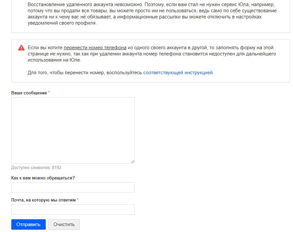 Удаление аккаунта.