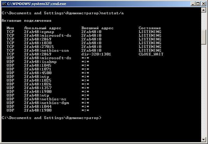 | netstat | Отображение статистики и информации о сетевом протоколе TCP/IP. | Внешний |
