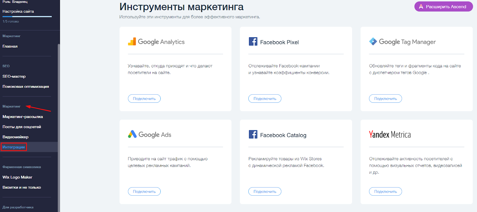 Для этого заходим в аккаунт wix ;