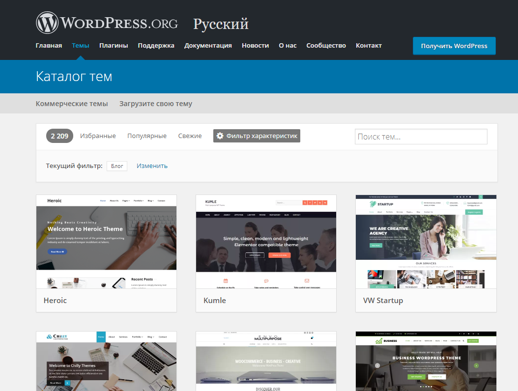 WordPress.org – вам нужен именно этот ресурс, если вы решили запустить самостоятельно размещаемый сайт. Здесь вы можете скачать платформу и найти большое количество плагинов и тем. Для размещения своего сайта вам нужно зарегистрировать домен и позаботиться о хостинге.