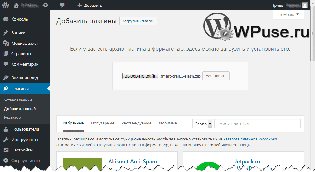 - Разархивируйте и загрузите в /wp-content/plugins/