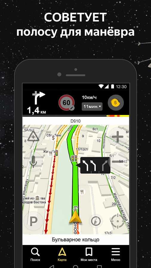 Яндекс. Navigator использует голосовые подсказки, чтобы направлять вас по пути, и отображает ваш маршрут на экране вашего устройства. Кроме того, вы всегда можете увидеть, сколько минут и километров вам осталось пройти.