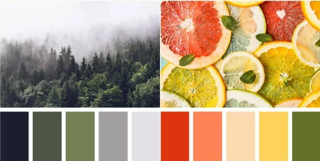Цвета урожая вызывают ассоциации с пышными садами и фруктовыми садами. Изображение через marcin jucha и chelovector.Цветовые палитры для сайтов блогов и портфолио