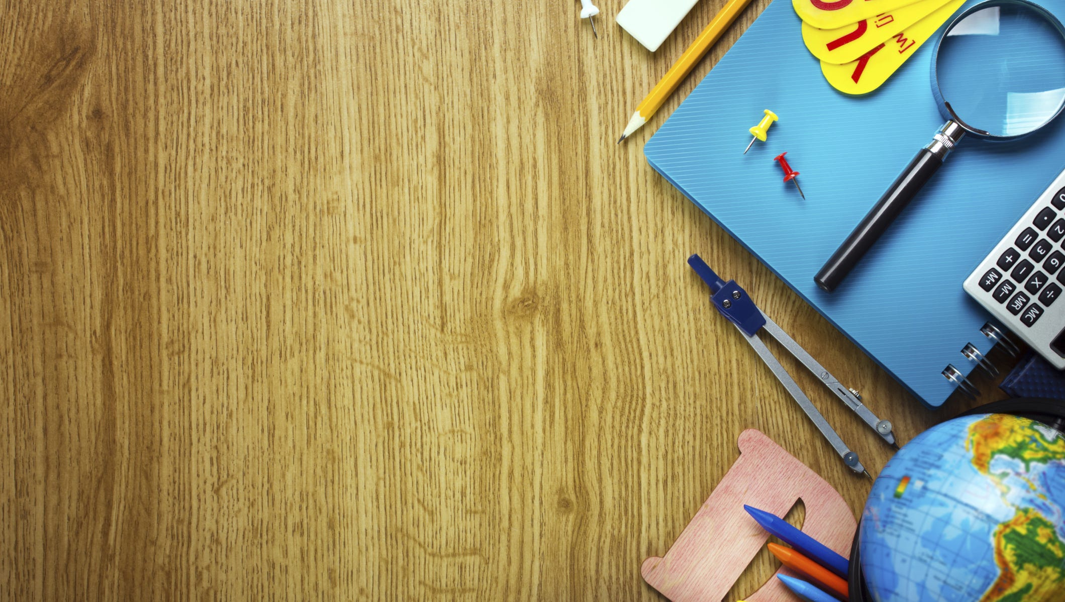 Шаблон баннера со школьной доской, глобусом, портфелем и мелом.