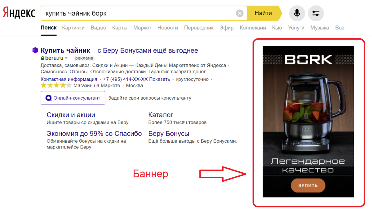 Поисковая реклама в Яндекс Директ и Гугл Адвордс. Это контекстная реклама, где объявление показывается пользователю, если он искал что-то подобное в Гугле или Яндексе соответственно. Другой вариант – компании сотрудничают с небольшими поисковыми системами, например, Мэйл.