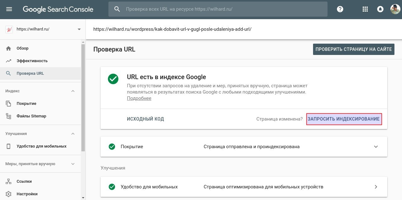 После регистрации в Google Search Console вы можете отправлять карты сайта и отдельные URL-адреса. - Проверка URL-адресов — просмотр подробной информации о сканировании, индексировании и обслуживании ваших страниц.