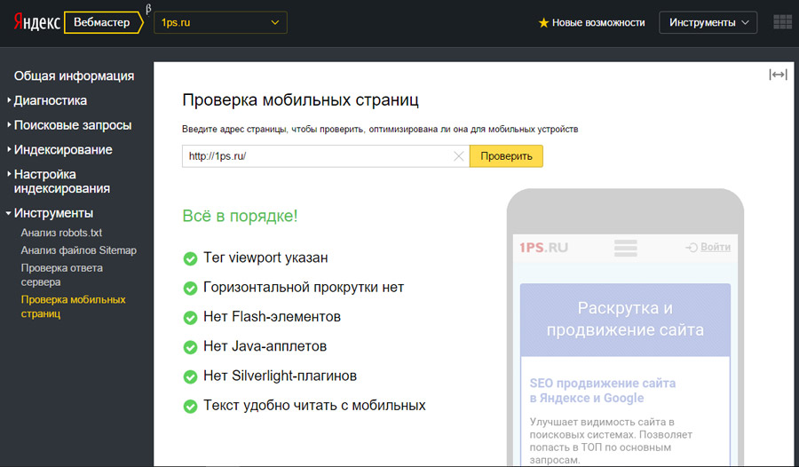 Еще один сервис, с помощью которого можно проверить видимость сайта. Разберем пример отчета для того же сайта.
