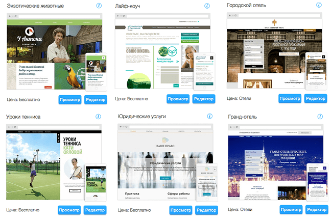 Дальнейшая работа происходит в редакторе, где можно делать с этим сайтом все, что душе угодно.