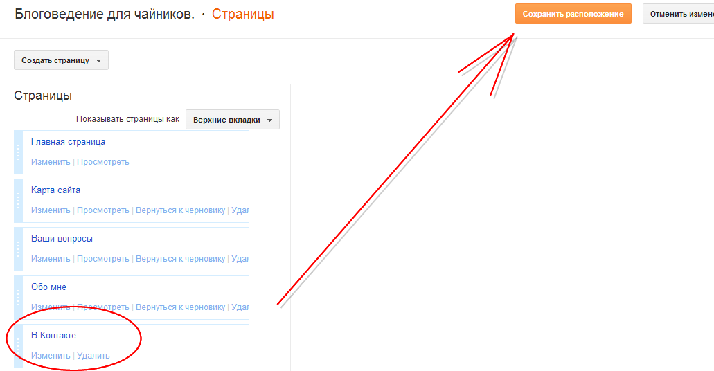 - В списке страниц на боковой панели щелкните страницу, которую хотите редактировать.
