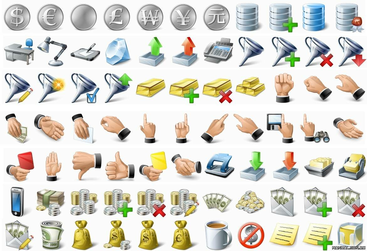 В комплекте 512 иконок, библиотека регулярно пополняется.