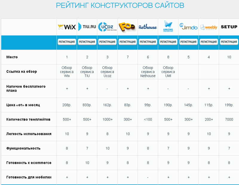 Все они разные, но они все достаточно хороши для того, чтобы попасть в ТОП конструкторов сайтов.